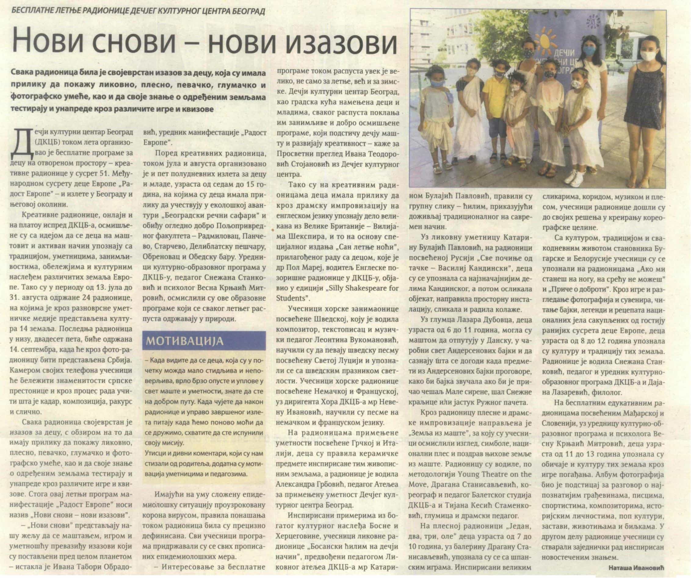 PRESS CLIPPING – ,,Нови снови, нови изазови”