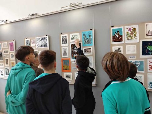 Водитељи радионице Александар Курузовић и Мирјана Филиповић Курузовић, на почетку посете су провели ученике кроз актуелну изложбу Радионице графике ДКЦБ, где су кроз угодан разговор о графици истакли разноврсност тема и ликовних израза аутора изложбе.