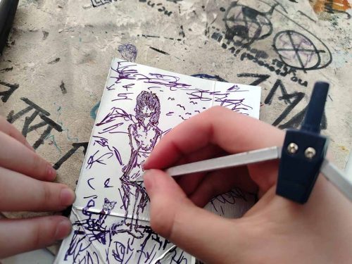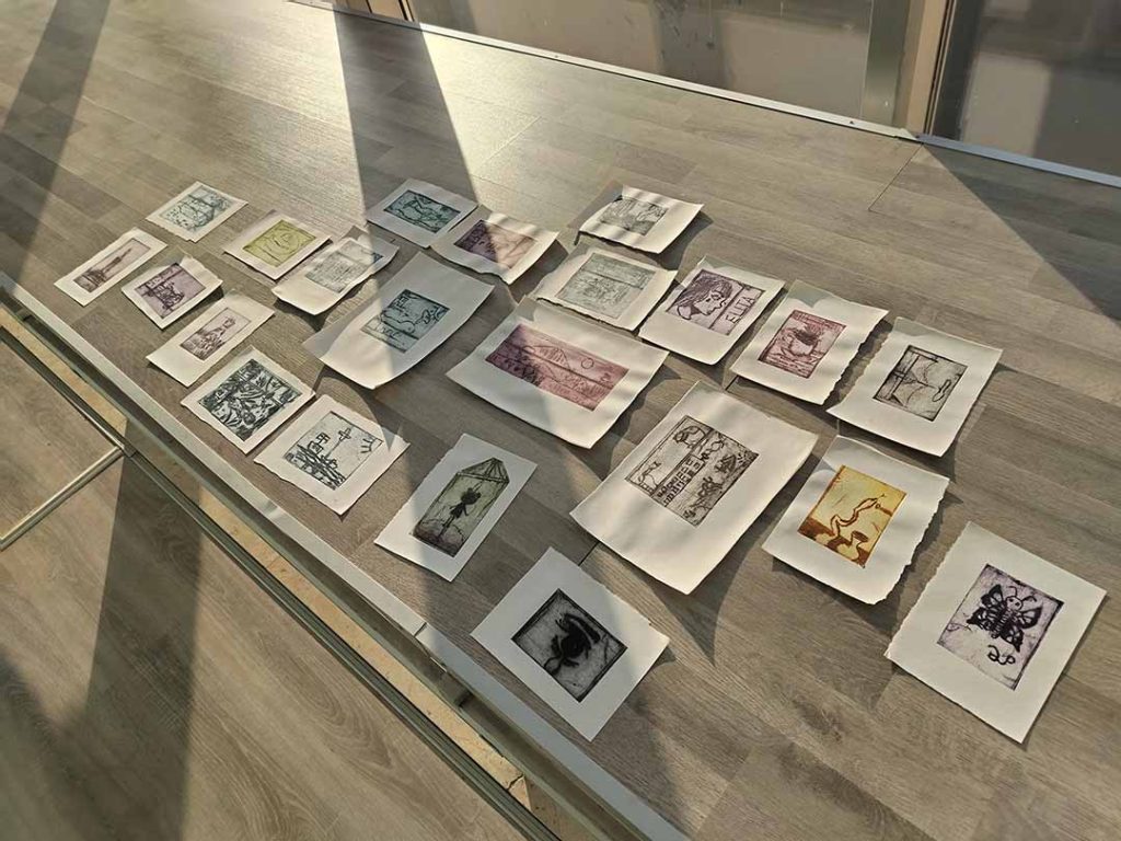 Након инспиративног разговора о уметности графике и упознавања са различитим графичким техникама, ученици су имали прилику да се и сами опробају у раду, користећи технику суве игле. Радознало и са великим интересовањем приступили су стварању својих првих графичких радова.