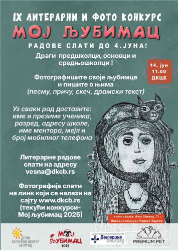 Ревија победника деветог фото и литерарног конкурса за децу и младе под називом „Мој љубимац”, у организацији Дечјег културног центра Београд и у сарадњи са ЈКП „Ветерина Београд”, одржаће се на платоу ДКЦБ, у Таковској 8, у суботу 14. јуна од 11 часова.