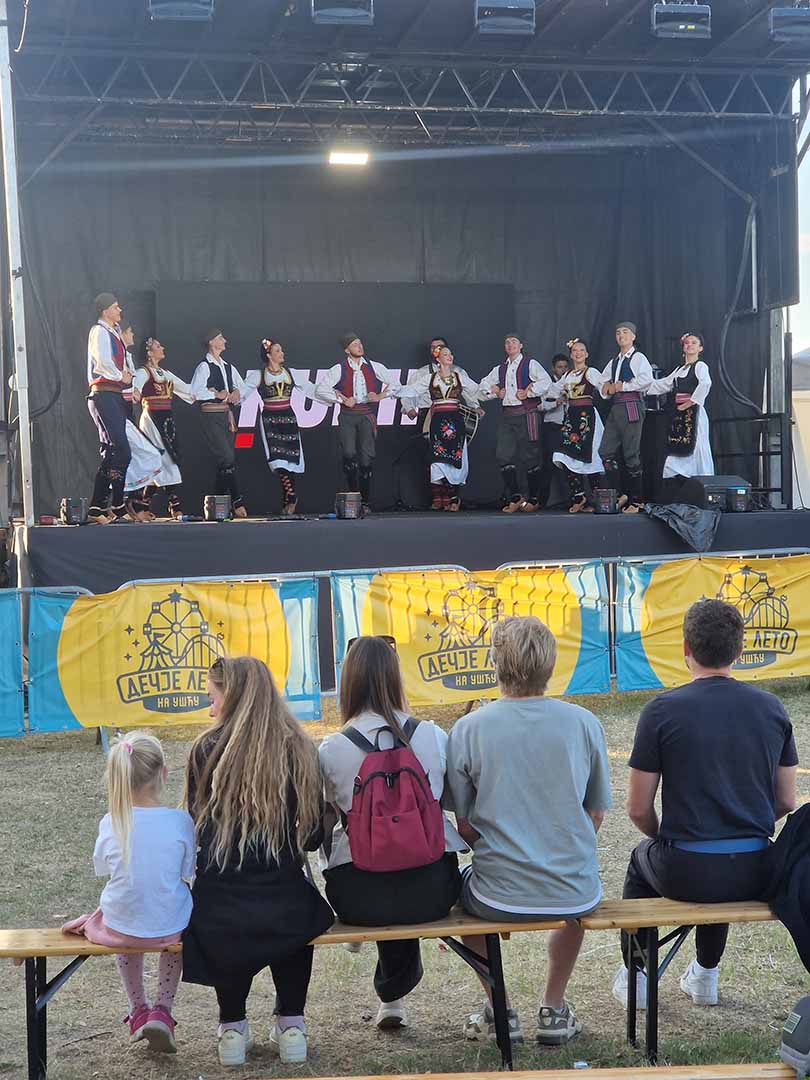 Дугогодишњи сарадници и пријатељи Дечјег културног центра Београд Уметнички центар “Талија” јуче је у оквиру Дечјег лета на Ушћу извео низ традиционалних игара. Слушали смо најлепше мелодије из свих крајева Србије а малишани су у првим редовима играли заједно са омладинским ансамблом овог уметничког центра.