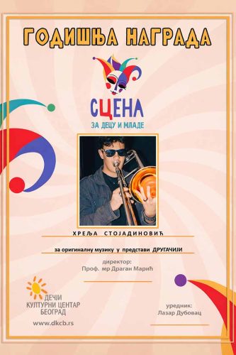 – за оригиналну музику у представи Другачији – Хреља Стојадиновић