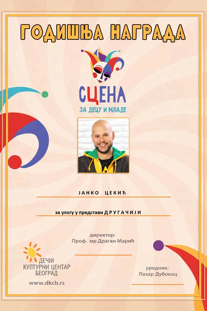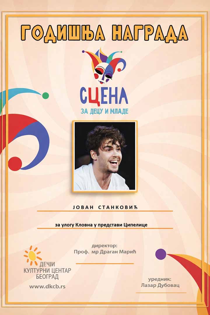– за улогу Кловна у представи Ципелице – Јован Станковић.