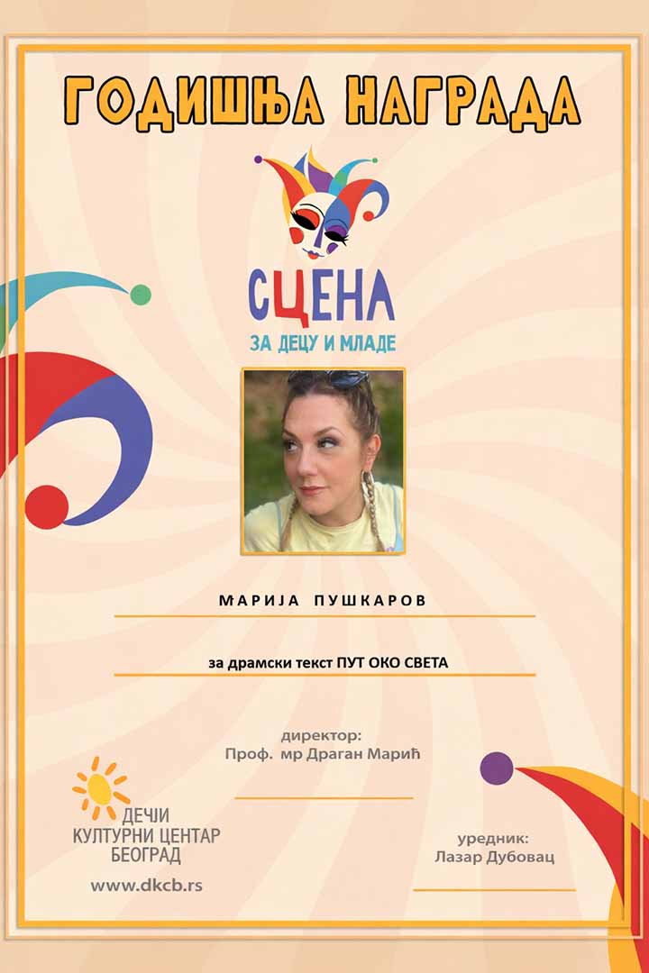 – за више улога у представама Пут око света и Наша деца – Миа Јовановић