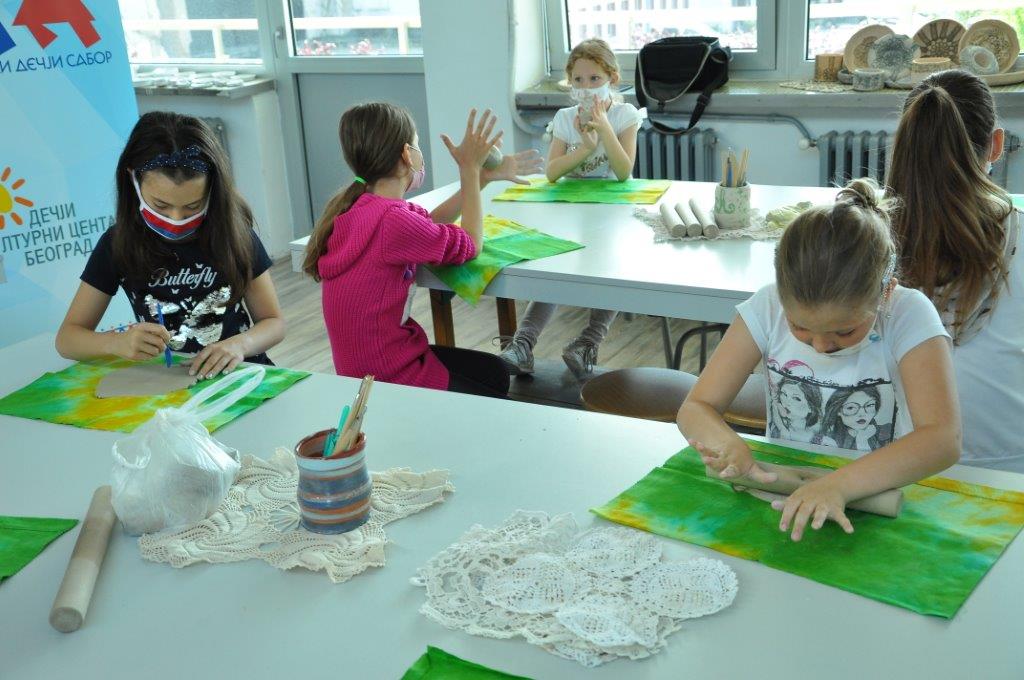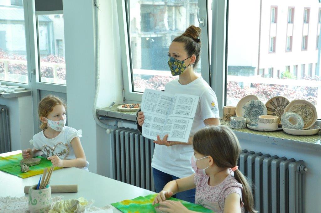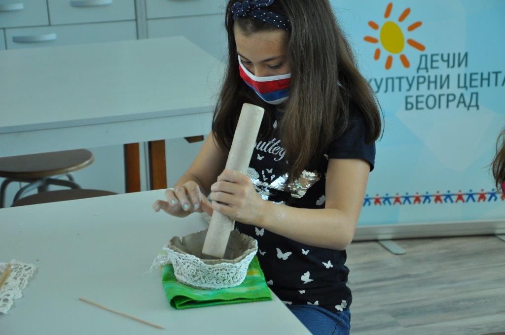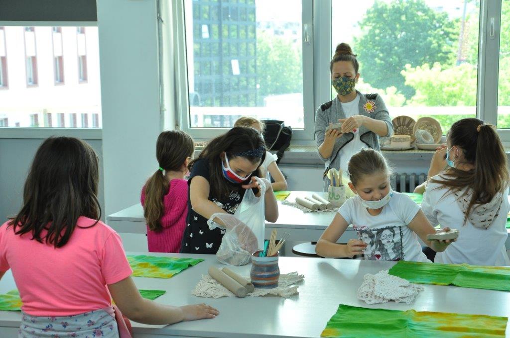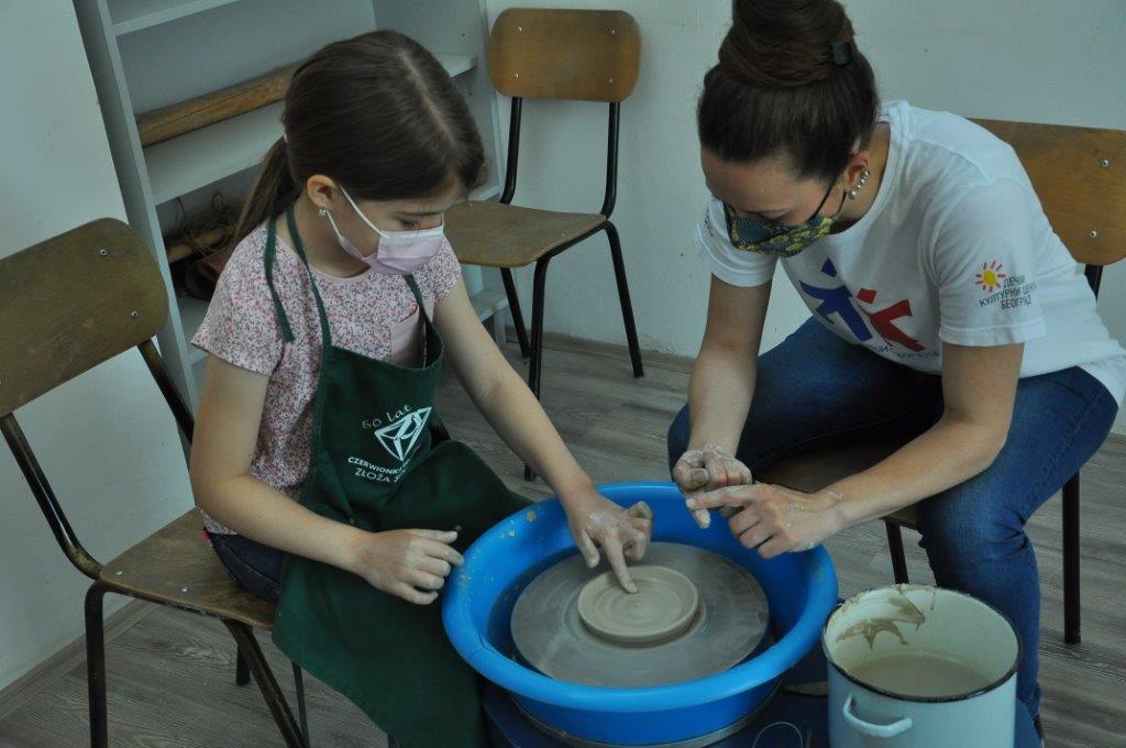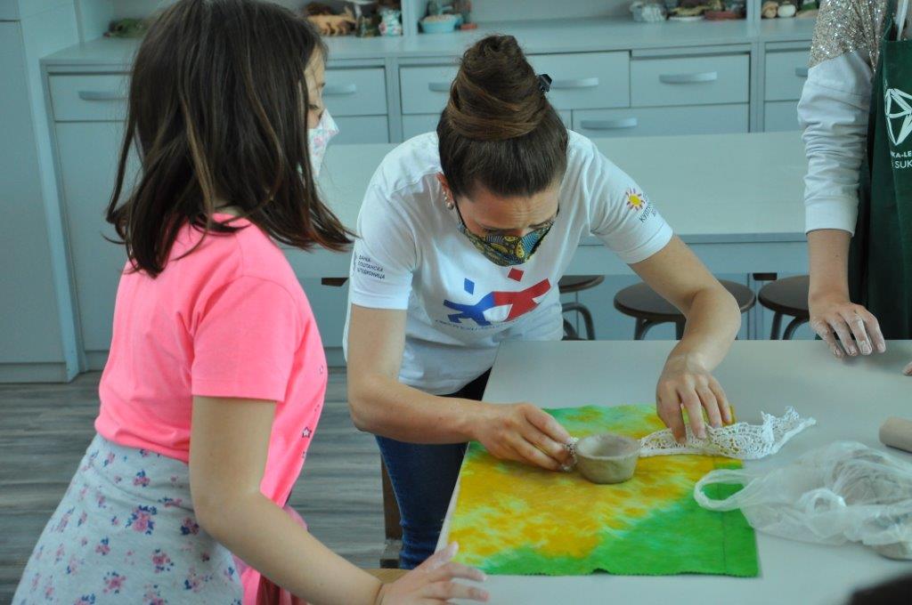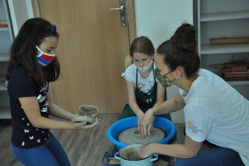 Током деведесет минута радионице учесници су имали прилику да се упознају са материјалом – глином и земљаним бојама – енгобама, да сазнају више о орнаментима и мотивима средњовековне Србије, да направе своју посуду од глине, украсе је и обоје.