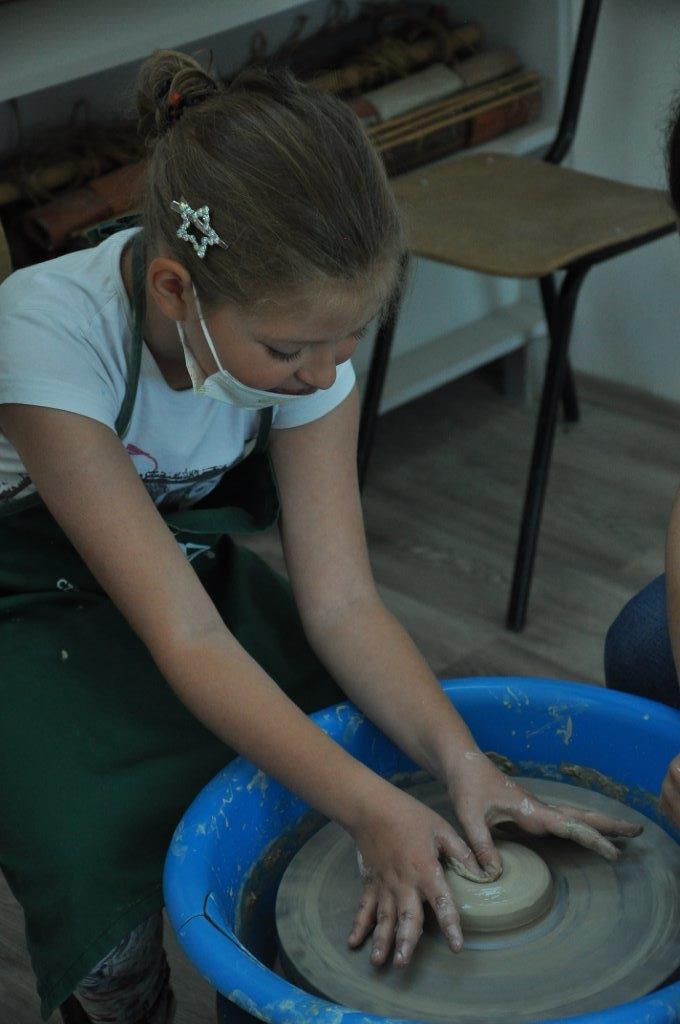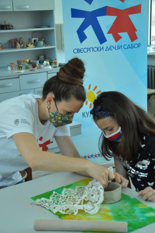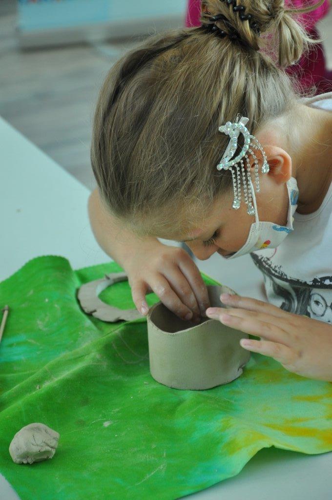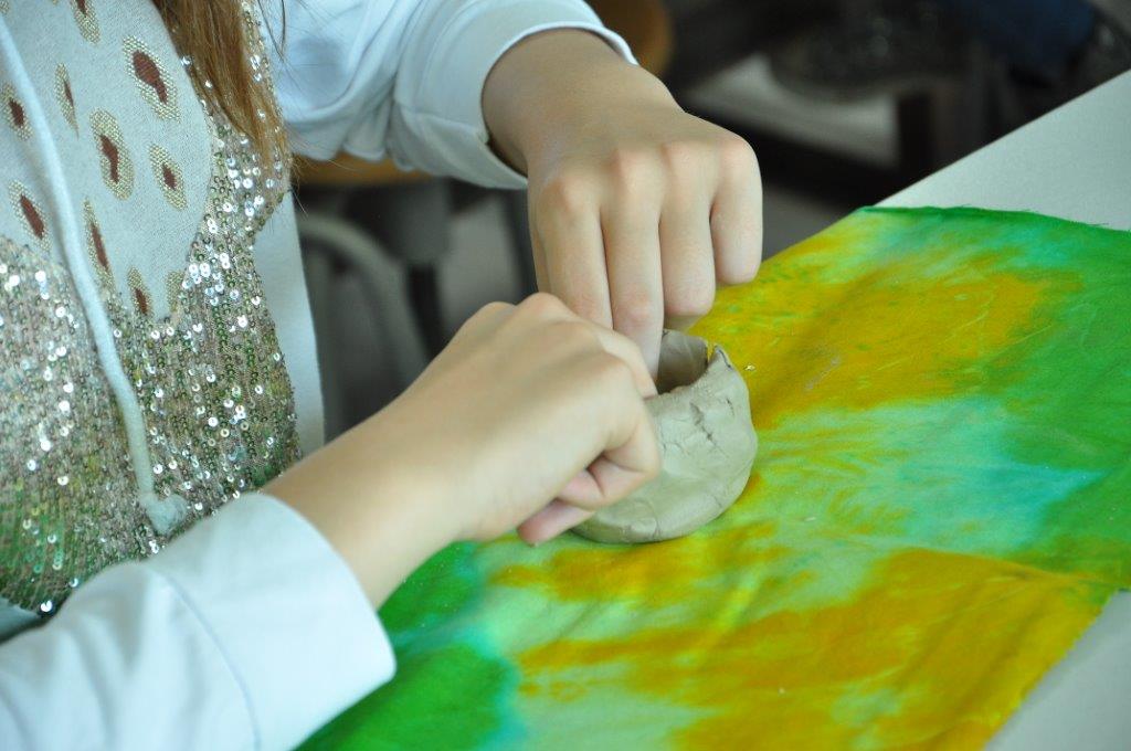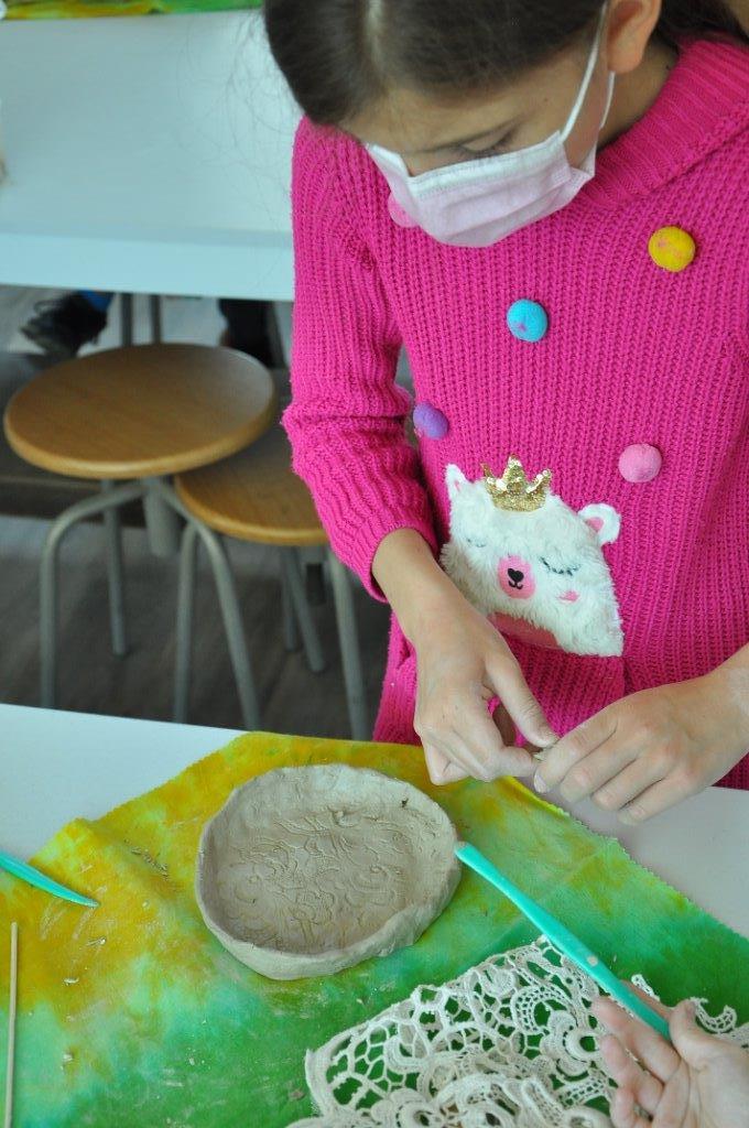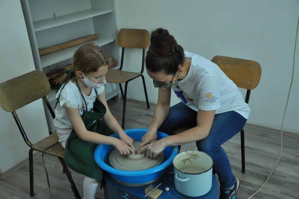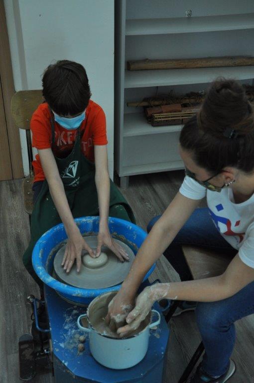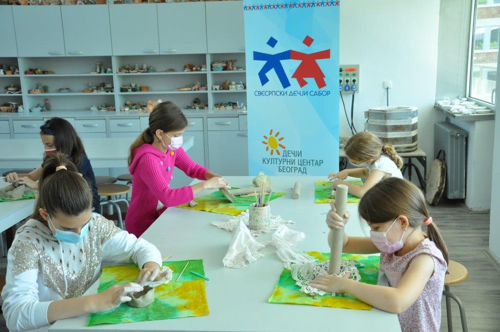 Током деведесет минута радионице учесници су имали прилику да се упознају са материјалом – глином и земљаним бојама – енгобама, да сазнају више о орнаментима и мотивима средњовековне Србије, да направе своју посуду од глине, украсе је и обоје.