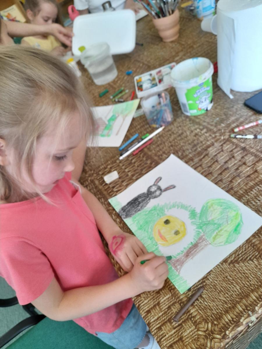 У оквиру радионице ,,СВЕТ БАЈКИ” 21. маја у библиотеци ДКЦБ представљена је руска бајка ,,Колобок”. Полазници секције ЖАР ПТИЦА илустровали су најинтересантније призоре из бајке о несташној и веселој лепињи.
