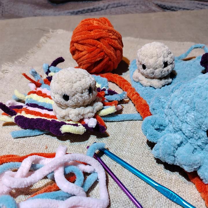 Везуљак и чворуљак најављује посебну радионицу „Исхеклај играчку“ замишљену као дружење полазника и једног члана породице или пратиоца са циљем да кроз заједнички рад науче основне технике хеклања и израде ручно рађену плишану фигурицу – играчкицу.