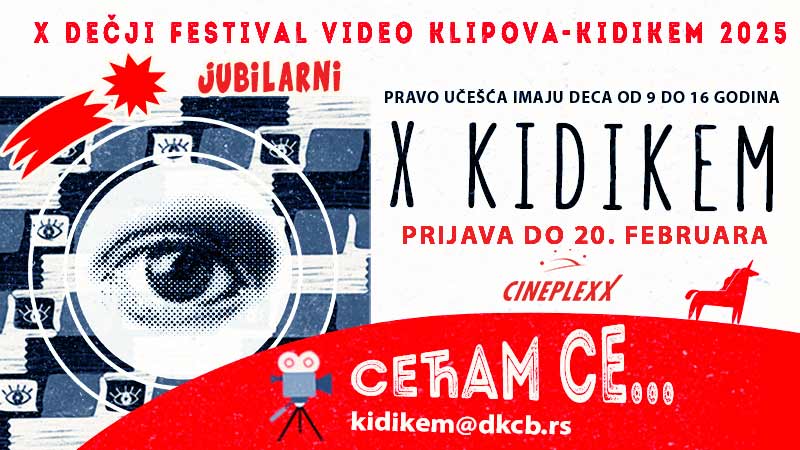 Фестивал дечјег видео клипа КИДИКЕМ Дечјег културног центра Београд ове године обележава јубилеј и десети пут организује конкурс за младе љубитеље седме уметности.
