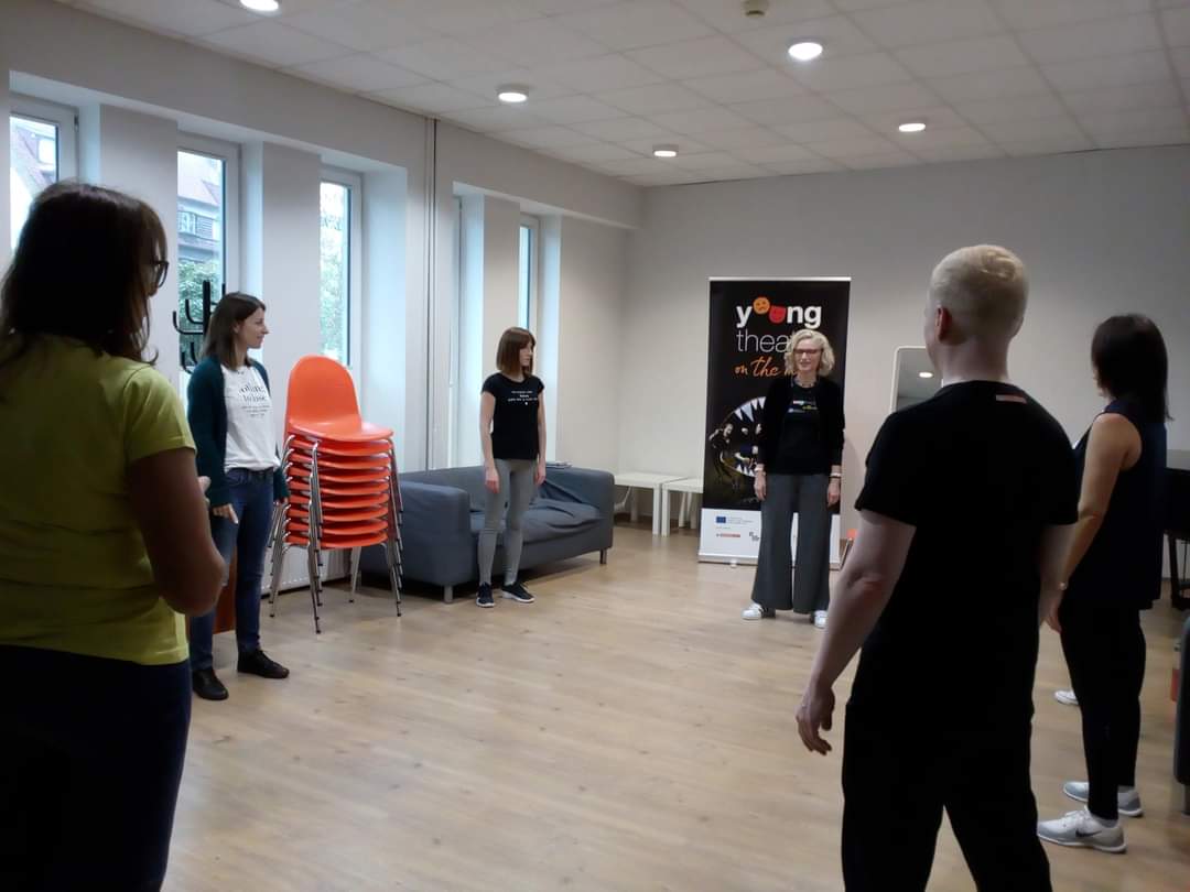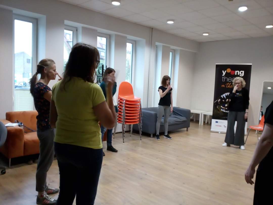 У Културном центру Елк у Пољској у суботу 18. септембра 2021. године одржана је драмско-образовна радионица за педагоге пројекта “Младо позориште у покрету”, подржаног програмом Креативна Европа. Као гостујући експерт, главни уметнички тренер била је Тијана Кесић Стаменковић – педагог Студија глуме ДКЦБ и члан српског тима Младог позоришта у покрету. Тијана Кесић Стаменковић одржала је радионицу специјално за педагоге који раде у вртићима и нижим разредима основне, а са темом прилагођавања већ постојеће методологије млађим узрастима. Друга радионица је одржана у сарадњи са уметничким тренерима из Пољске, на којој су биле презентоване вежбе сценифичне ИМПРО ПОКРЕТ методологију, као припрема за приказивање публици на Дану импровизације који треба да се одржи у Пољској крајем октобра.