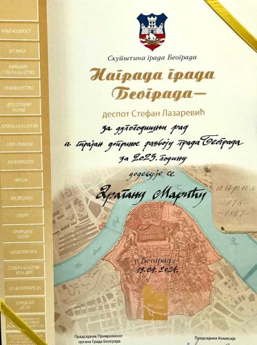 Директору ДКЦБ проф. мр Драгану Цалету Марићу данас је уручена Награда Града Београда „Деспот Стефан Лазаревић“ за 2023. годину