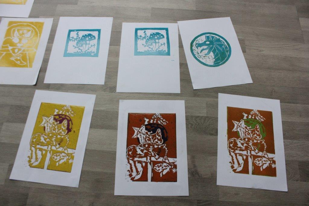Завршавамо линорезе и потписујемо отиске, правимо скице за дубоку штампу коју ћемо радити током следеће недеље.