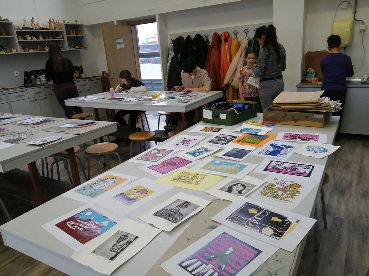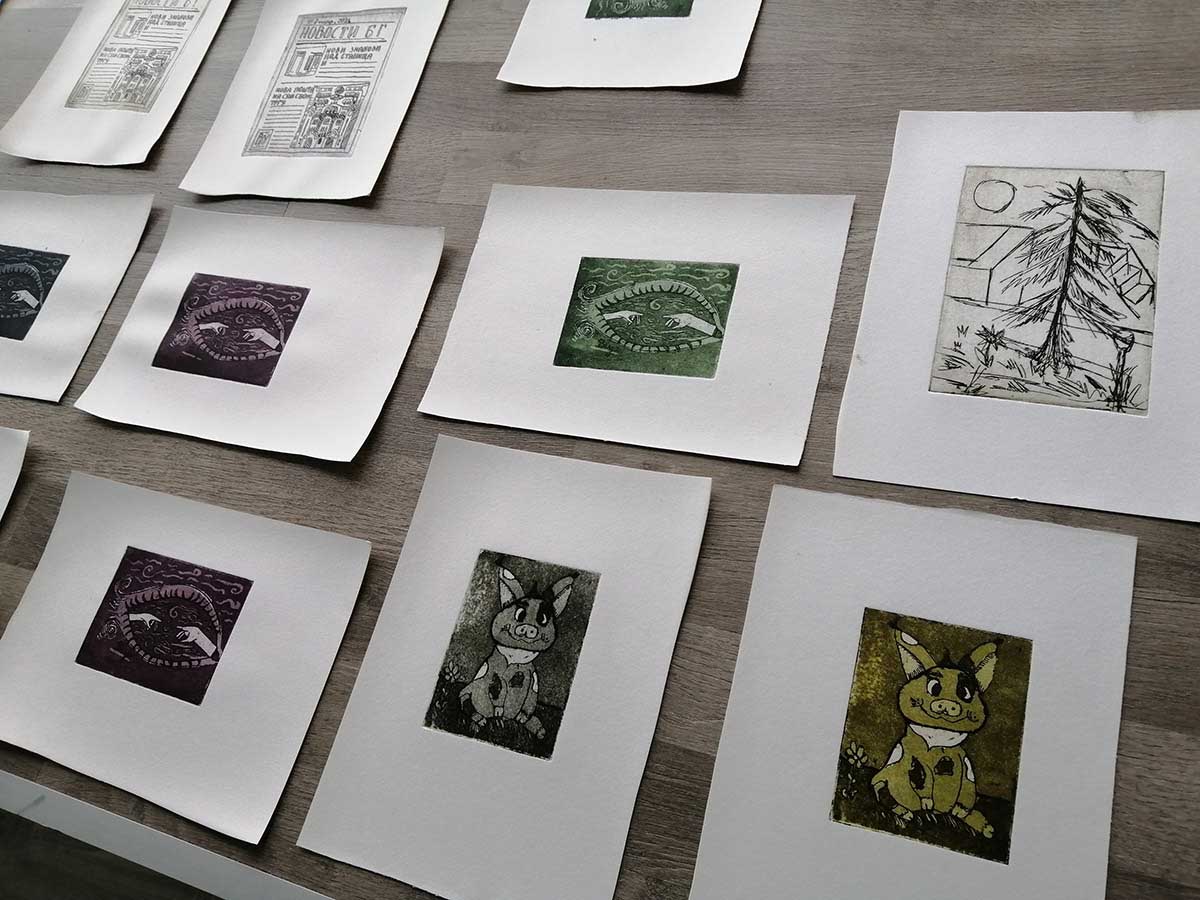 Различите теме, много боја и неизоставна графичка црна отискиване су што ручно, што пресом у раскошне дечије графике. Цртали смо скице, пажљиво их преносили на графичку матрицу, резали, штампали, дружили се и размењивали знања и осећања.