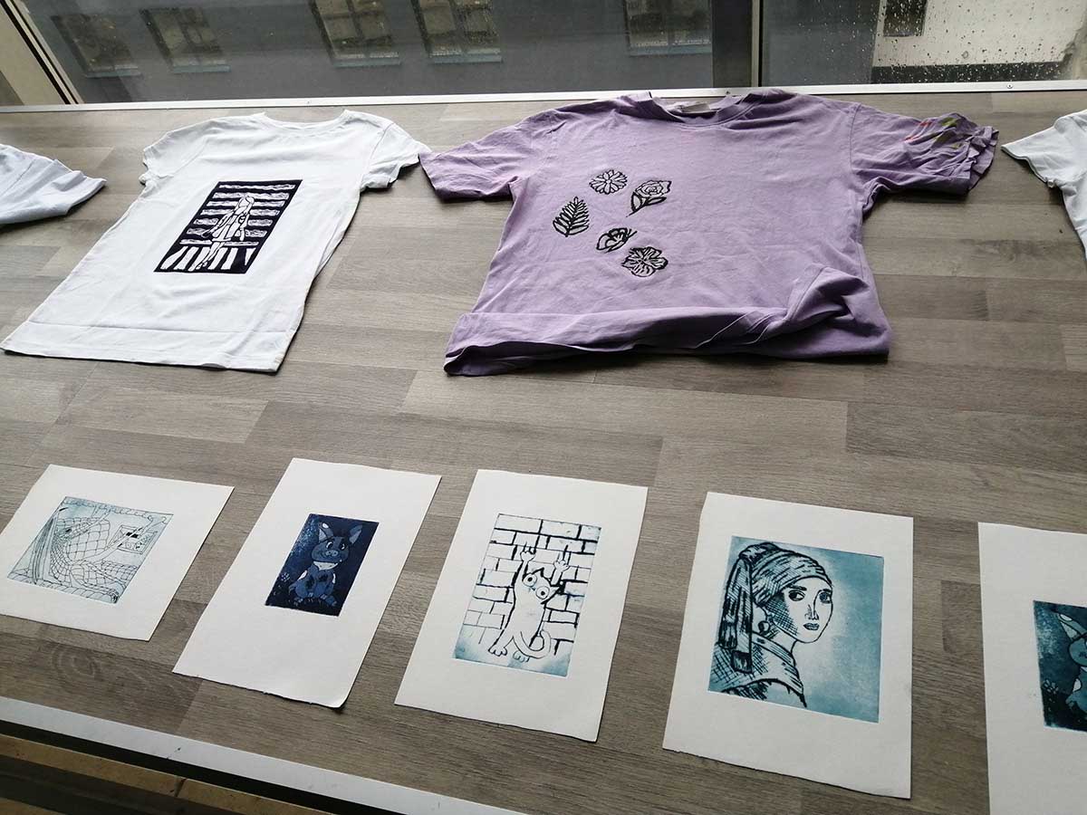 Последњег дана неке од насталих линореза штампали смо на мајцама.