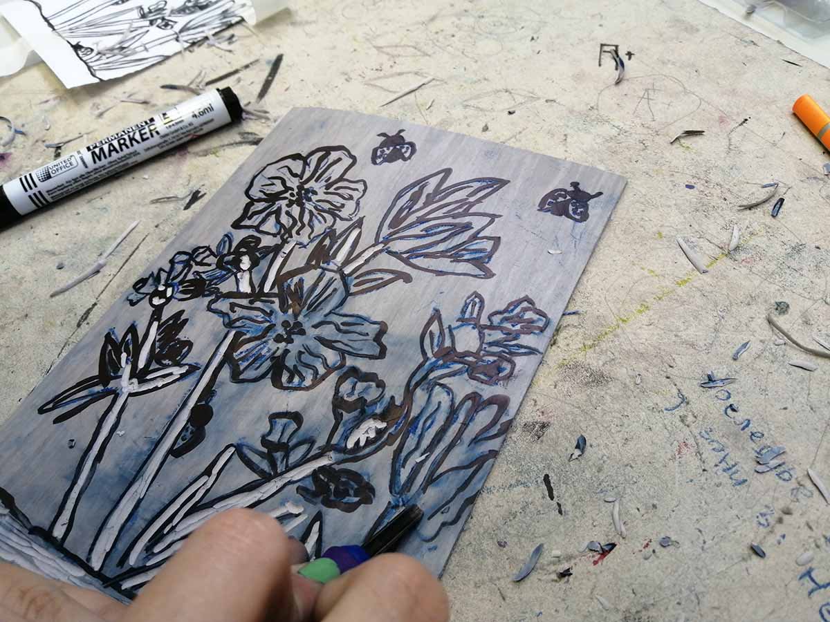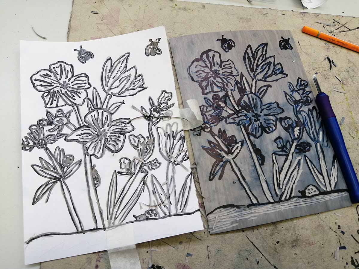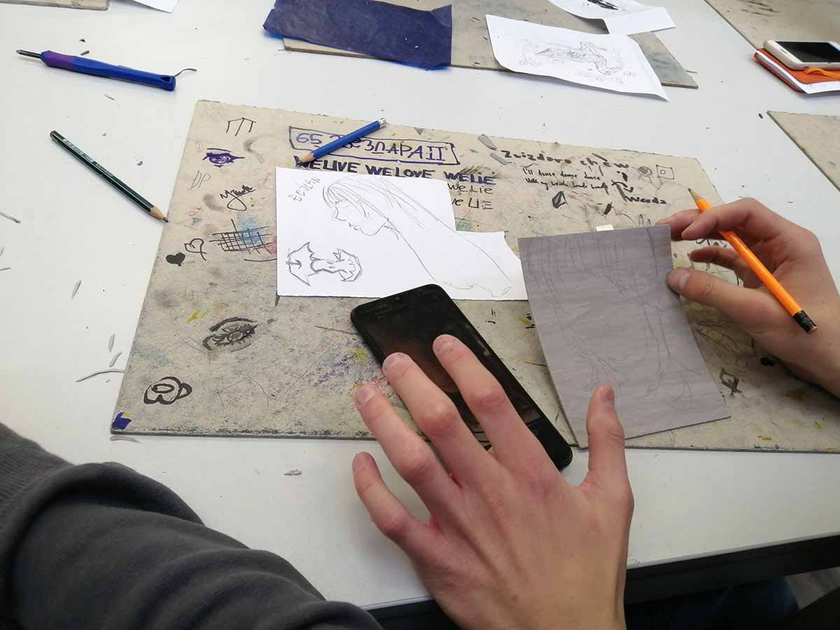 Радимо прве скице и почињемо са линорезом.