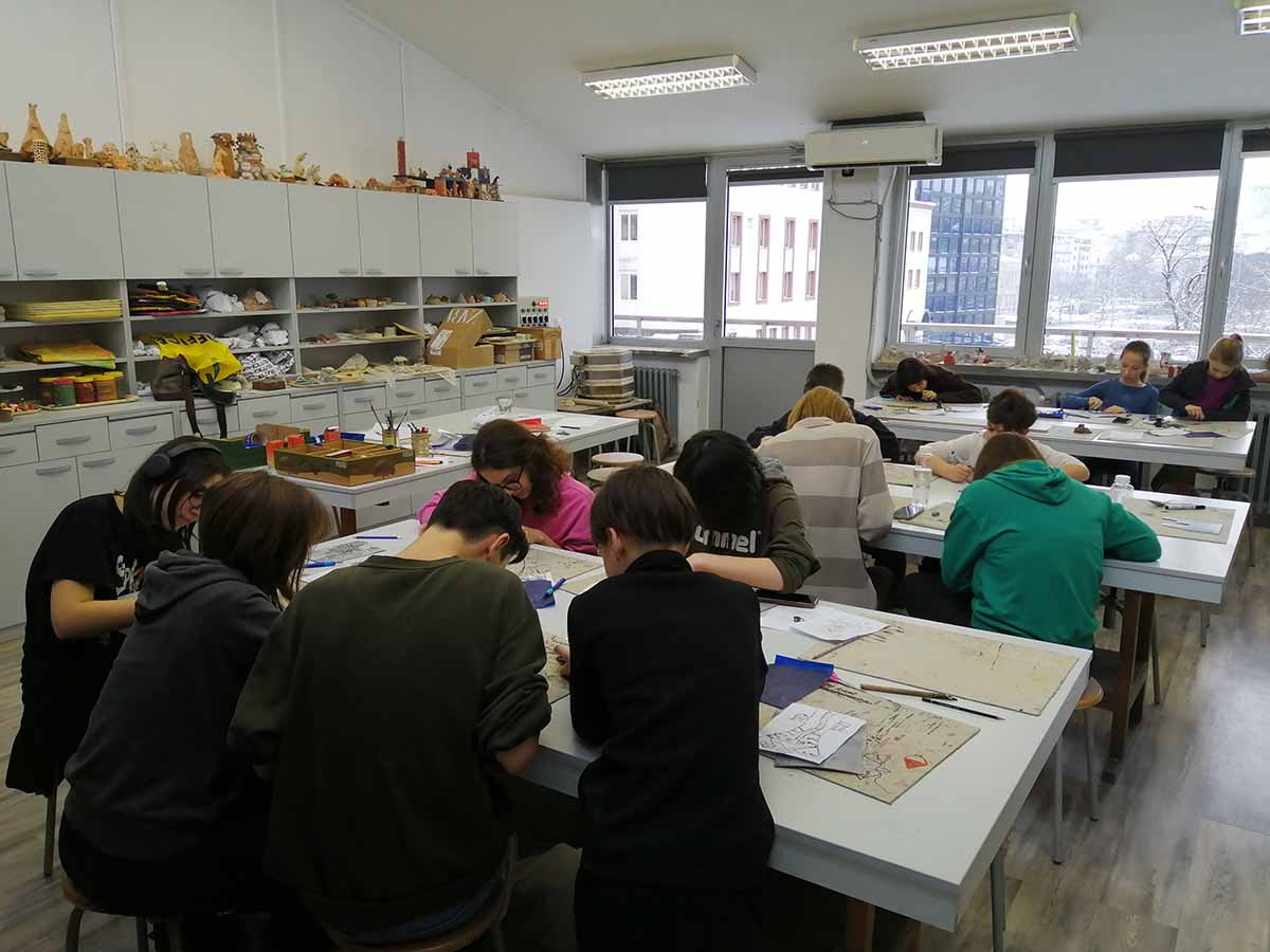 Заинтересована деца која зимски распуст проводе у Београду су се окупила на првом часу радионице графике.