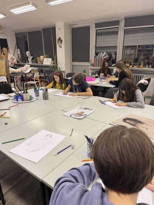 На ликовој радионици за време зимског распуста у Дечјем културном центру Беогад деца су имала могућност да се опробају у цртању по посматрању као и да правилно визирају пре и у току цртања поставке мртве природе.