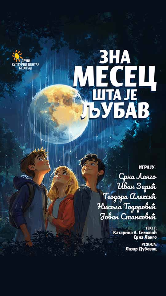 Премијера представе ЗНА МЕСЕЦ ШТА ЈЕ ЉУБАВ заказана је за суботу 1. марта у 12 часова у Дечјем културном центру Београд на великој сцени Донка Шпичек.